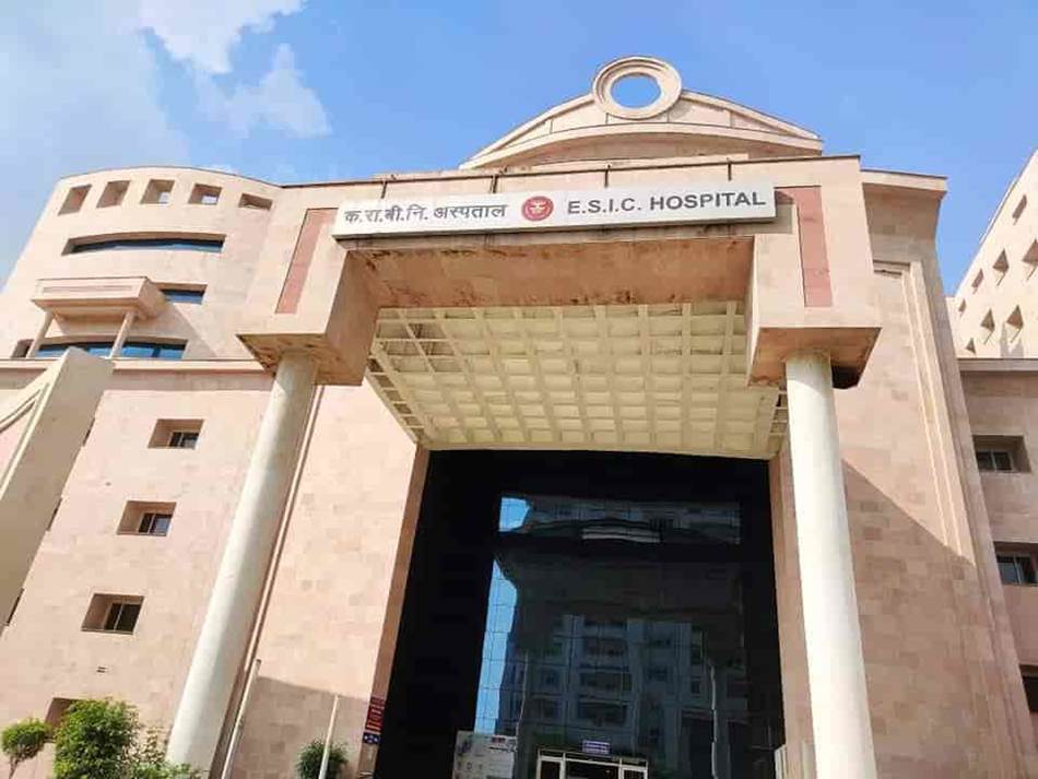 Front view of an Employees’ State Insurance Corporation (ESIC) Hospital building in India.