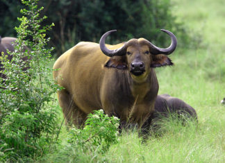 एक भैंस घबराई हुई जंगल मे भागी जा रही थी