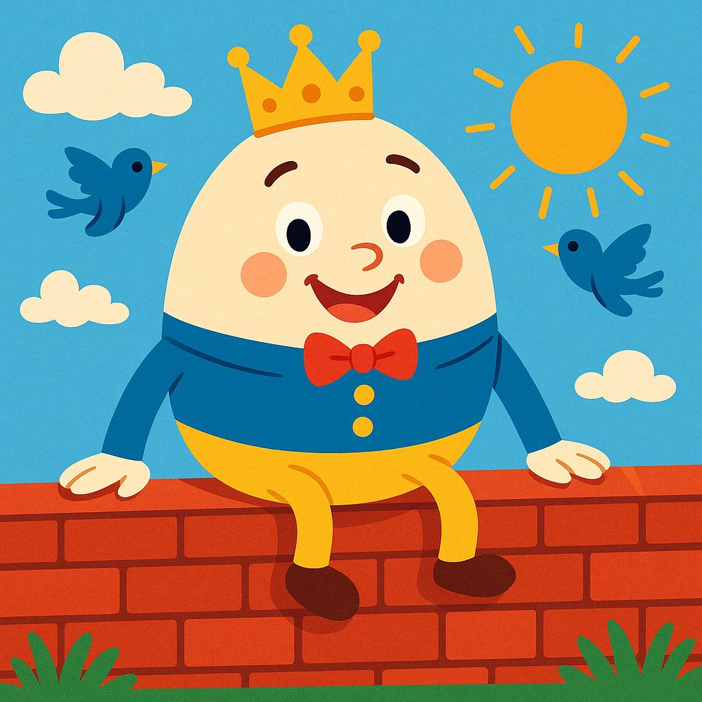 “Humpty Dumpty” is a well-known character from an English nursery rhyme who is typically symbolised by an egg.