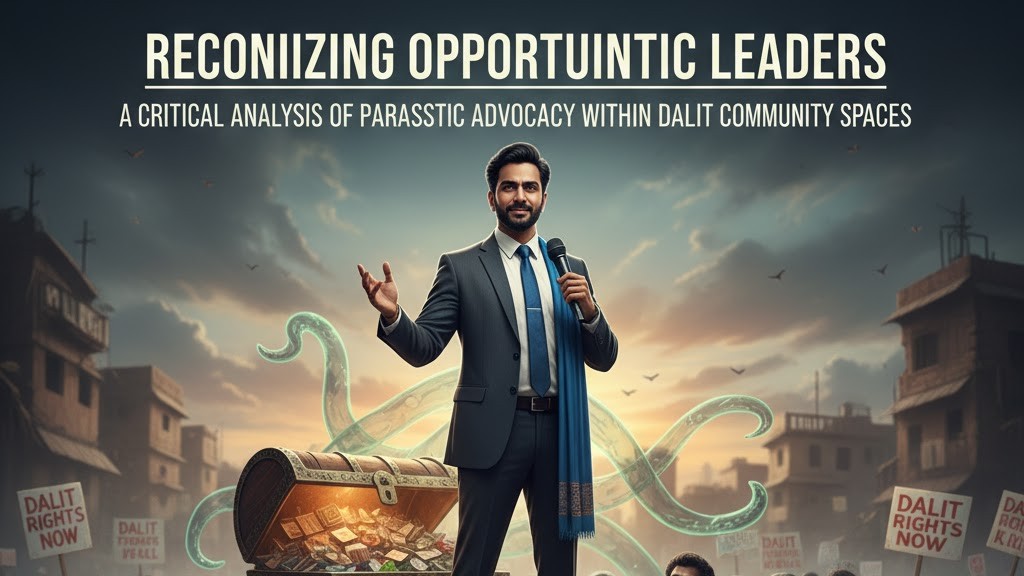 Within Downtrodden (Dalit) community spaces, a troubling phenomenon has emerged where individuals and organizations claiming to represent the interests and welfare of Downtrodden (Dalit) often operate primarily for personal gain and political positioning. These individuals employ the language of caste justice, awareness-raising about atrocities, and social welfare while strategically distancing themselves from substantive work that would genuinely improve the conditions of vulnerable community members. The relationship between such opportunistic actors and the communities they purport to serve mirrors a parasitic dynamic—one in which the host (the Downtrodden (Dalit) community) provides legitimacy, visibility, and resources while receiving minimal tangible benefits in return. This article examines how Downtrodden (Dalit) communities can develop critical frameworks to identify fraudulent leadership, evaluate genuine commitment, and build alternative organizational structures that prioritize accountability and measurable results over rhetoric and personal advancement. [1][2][3][4]