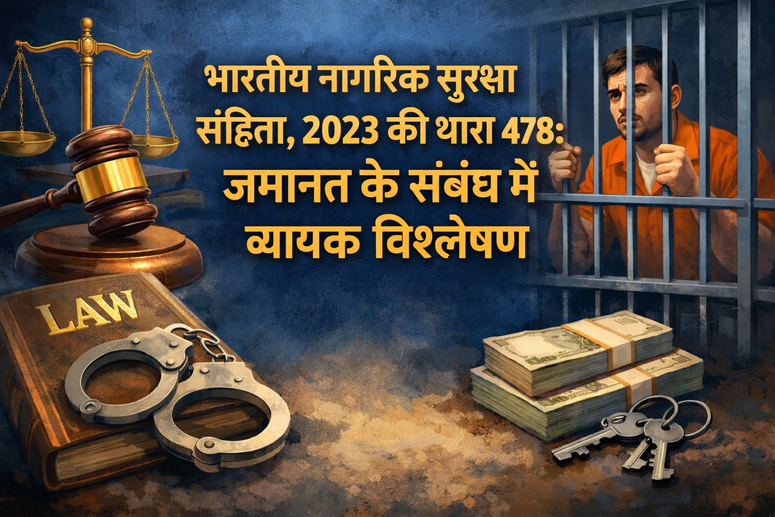 भारतीय नागरिक सुरक्षा संहिता, 2023 (Bharatiya Nagarik Suraksha Sanhita, 2023 – BNSS) को 1 जुलाई, 2023 को भारत में लागू किया गया, जो 1973 के आपराधिक प्रक्रिया संहिता (CrPC) को प्रतिस्थापित करता है। BNSS की धारा 478 दंड प्रक्रिया में जमानत का एक महत्वपूर्ण प्रावधान है। यह धारा बालिग अपराधों में जमानत के अधिकार को स्पष्ट करती है और व्यक्तिगत स्वतंत्रता और न्यायिक निरीक्षण के बीच संतुलन बनाती है[1]। यह लेख धारा 478 के सभी पहलुओं का विस्तृत विश्लेषण प्रदान करता है।
