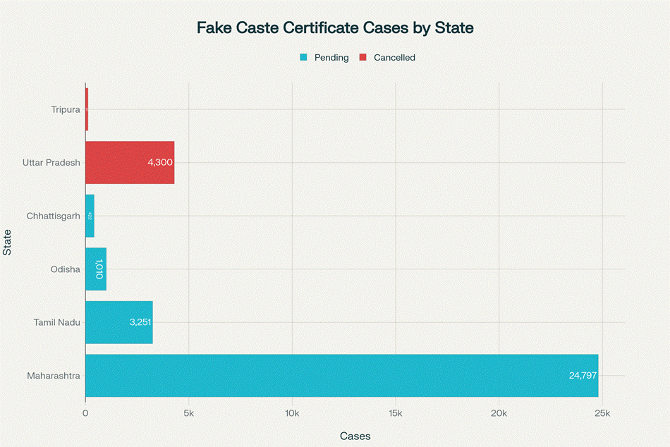The scale of the problem became apparent when the investigation expanded beyond Uttar Pradesh. Maharashtra emerged as having the highest number of pending fake certificate cases with 24,797 complaints, while Tamil Nadu had 3,251 cases, and Odisha recorded 1,010 cases. In stark contrast to other states where cases remained pending, Uttar Pradesh had cancelled 4,300 certificates since 2012, though significantly, all these cancellations were subsequently challenged in high courts with stay orders issued.[2][1]