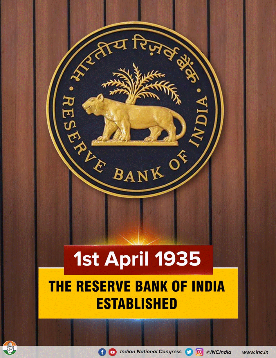 The Reserve Bank of India was established on 1st April 1935, as shown by its official emblem and founding date.
